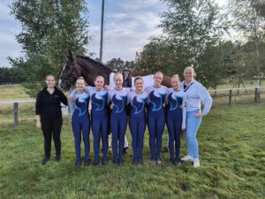 Nach diesem wirklich schönen und erfolgreichen Vormittag ging es dann noch ein zweites Mal Richtung Hechthausen. Dieses Mal mit Norina an Bord für die beiden Schrittgruppen. Das Pferd war gerade gegurtet und bereit zum warm machen, als es im Prüfungszirkel zu einer Verzögerung kam, woraufhin wir auf einmal viel zu früh dran waren. Aber zum Glück kann man Nori ziemlich einfach irgendwo parken.