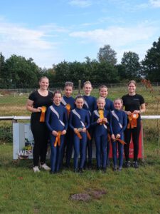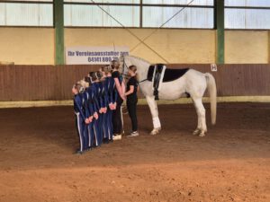 Dann kam der letzte Auftritt als Voltipferd für unseren Warengo. Ein allerletzter Turnierstart für ihn und seine Galopp-Schritt Gruppe mit Marieke und Stina. Das war für alle ein komisches Gefühl. Die Prüfung lief super und Warengo hat sich mal wieder selbst übertroffen. Er lief sehr gleichmäßig, rund und ist schön durchgesprungen, sodass seine Voltis sich voll auf ihre Übungen konzentrieren konnten. Nach dem Auslaufen sickerte dann wirklich bei allen die Erkenntnis vollends durch, dass Warengo jetzt in den wohlverdienten Ruhestand geht. Da kullerte schon so manche Träne. Gerade bei den Kleinsten mussten die Emotionen heraus.