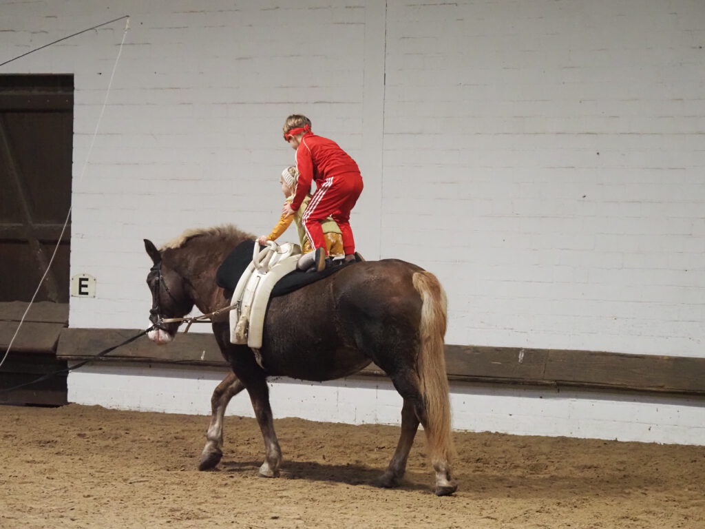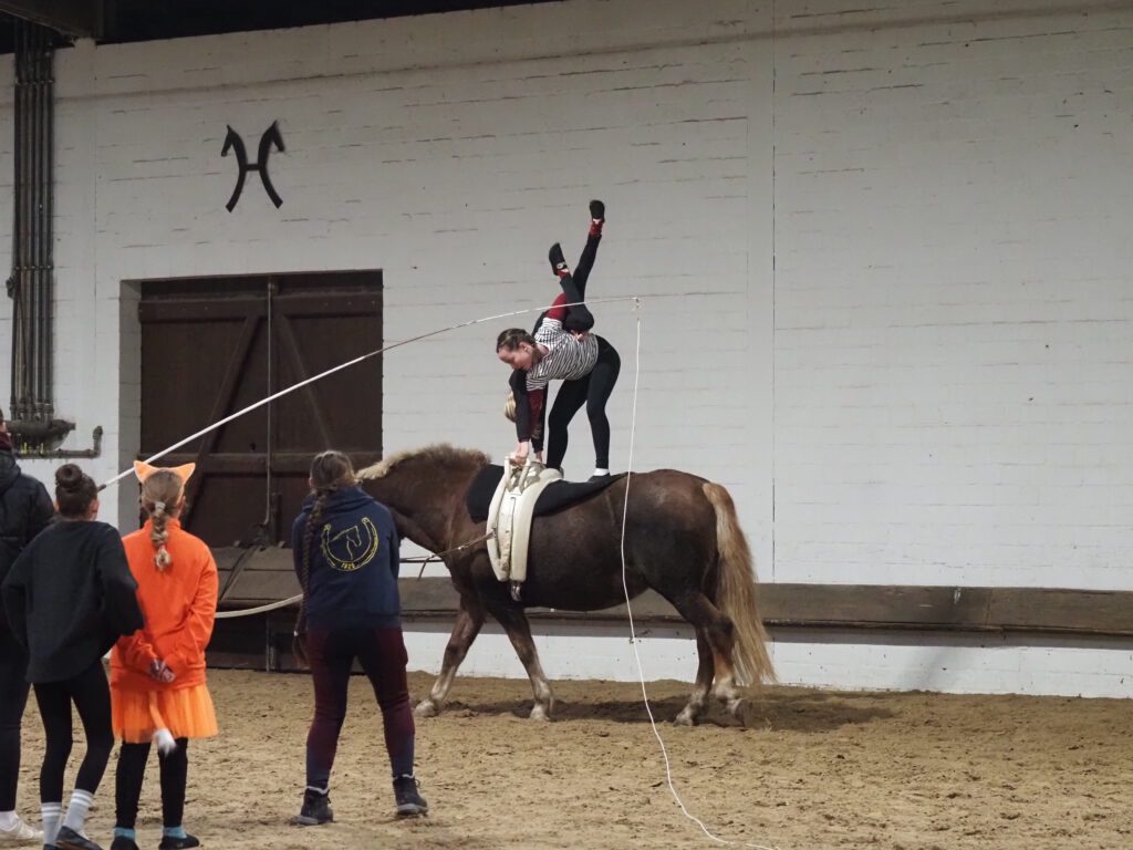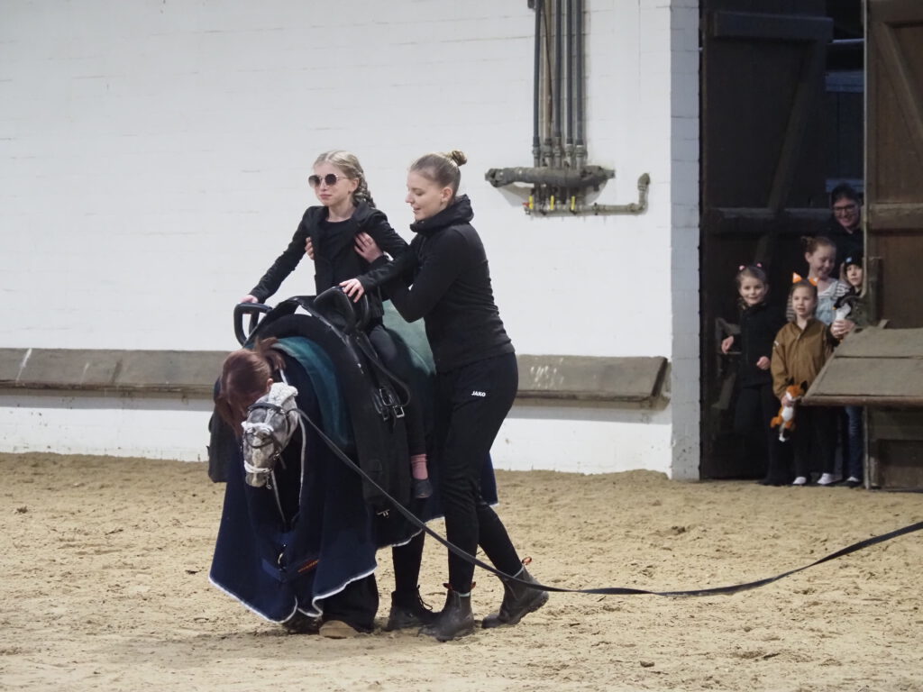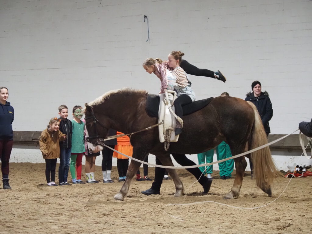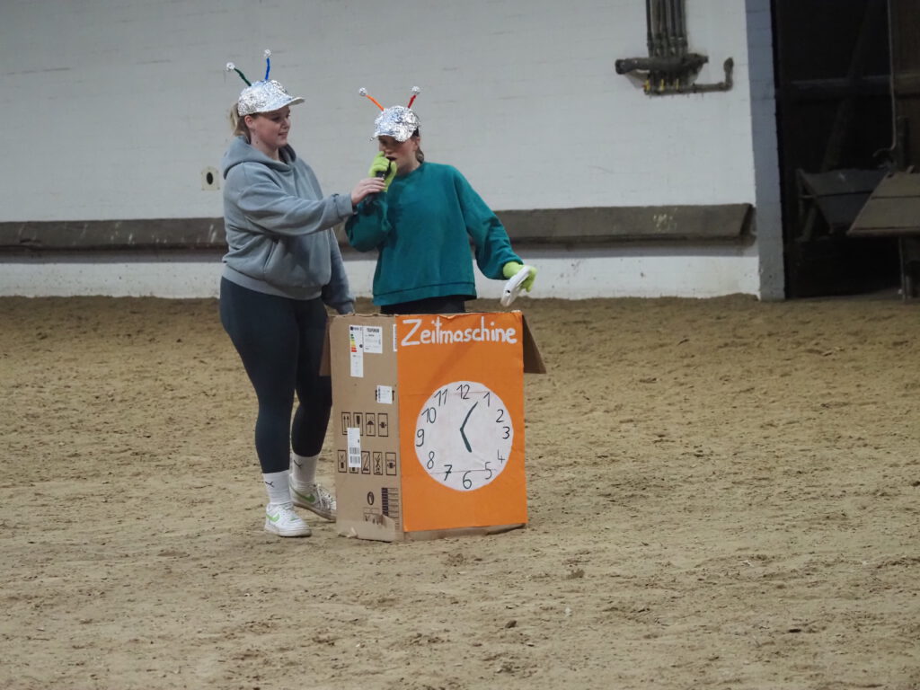 Beim diesjährigen Nikolausreiten war das Motto „Eine Zeitreise“. Unsere Voltigiergruppen haben sich viel zu dem Thema einfallen lassen, die Fotos beweisen es. Am Ende kamen die Zeitreisenden gerade noch rechtzeitig am 6. Dezember 2025 in der Reithalle an, um den Nikolaus nicht zu verpassen.