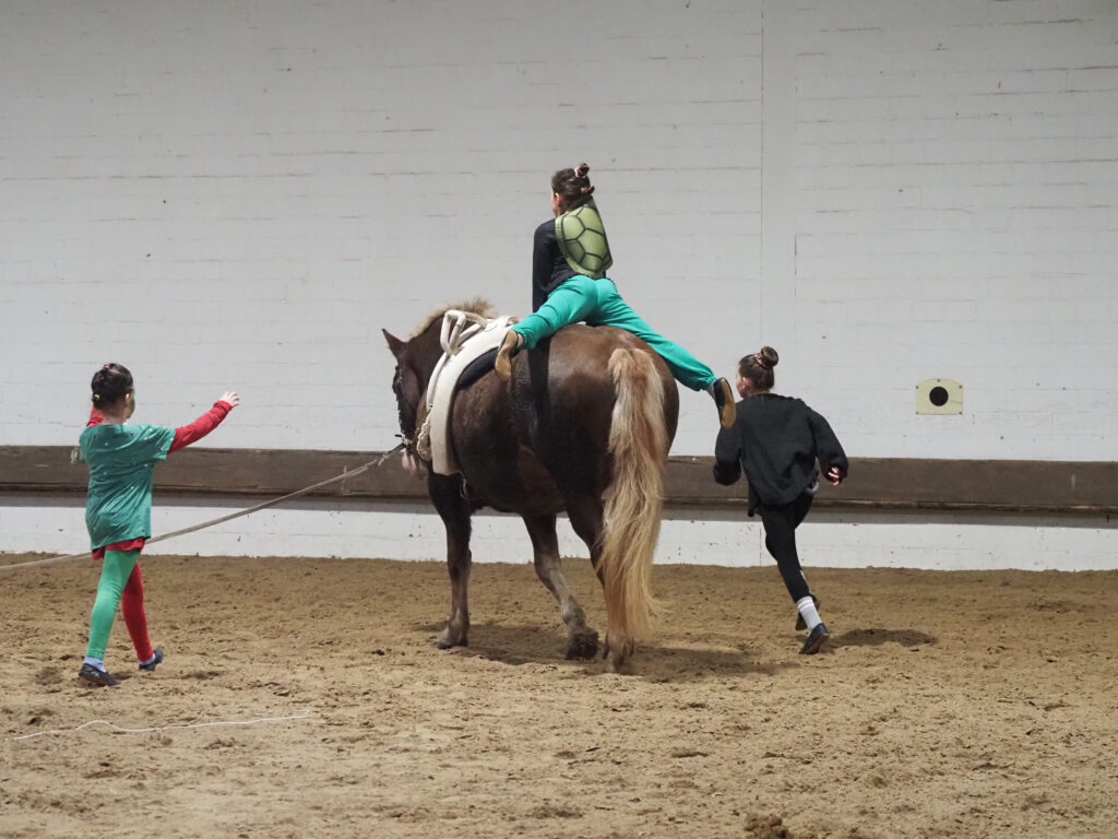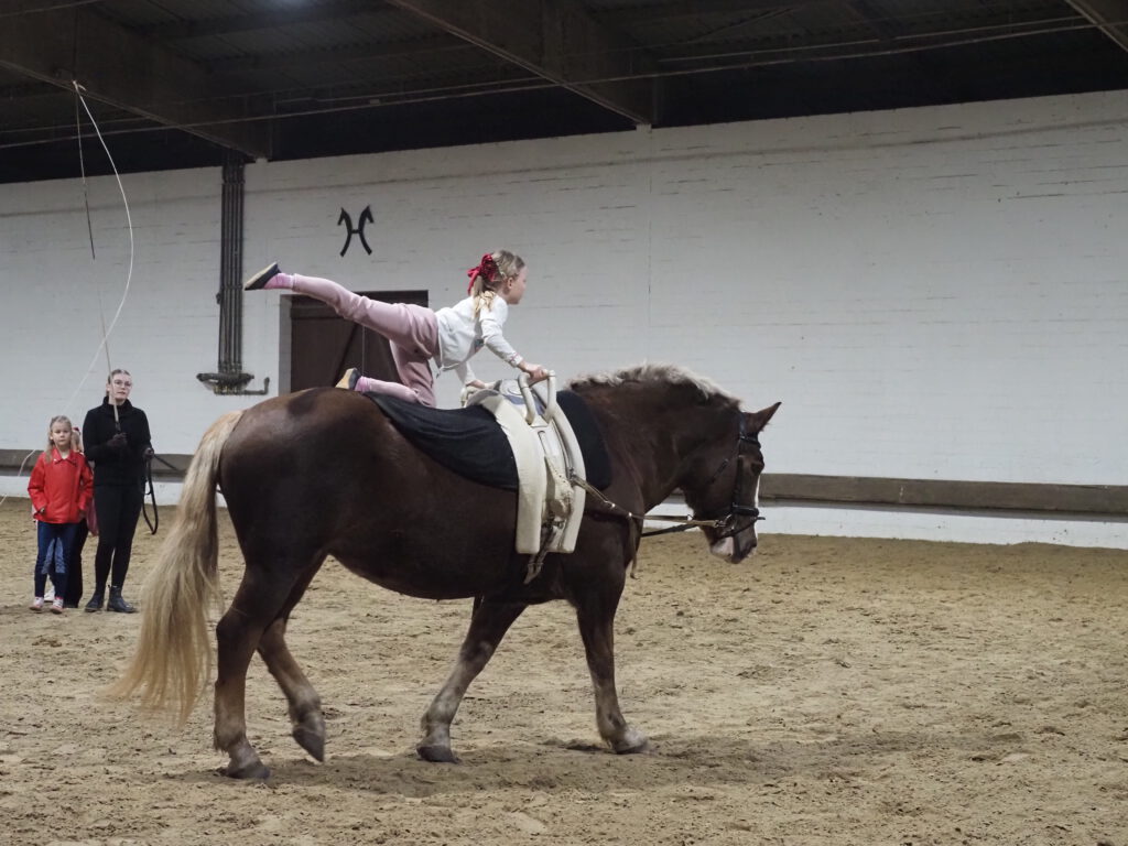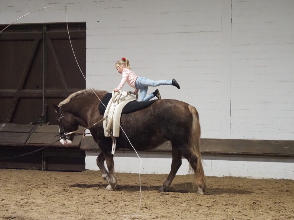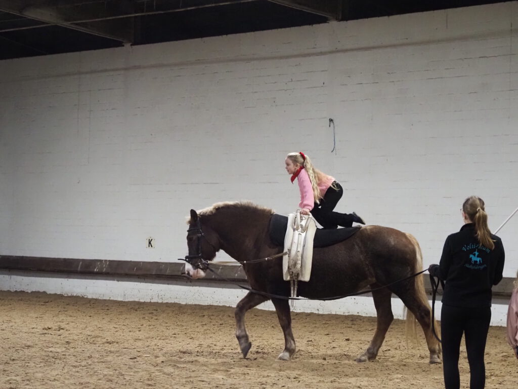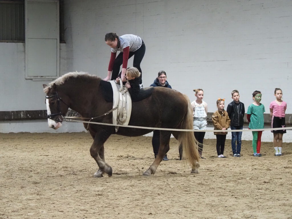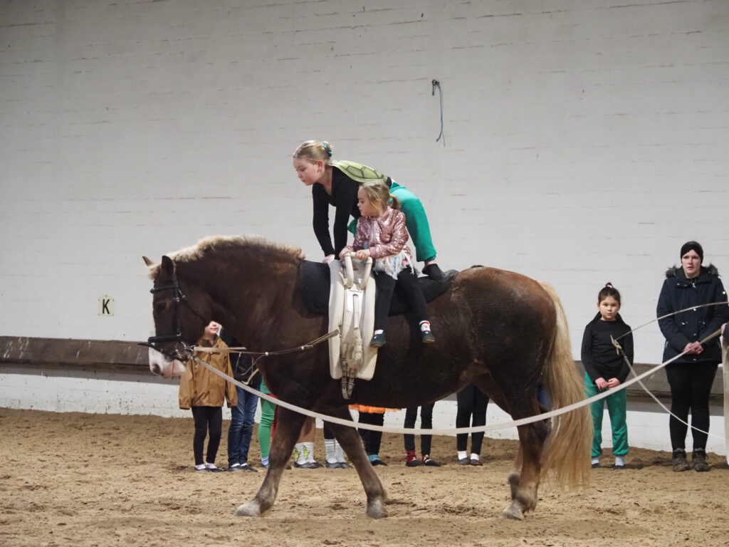 Beim diesjährigen Nikolausreiten war das Motto „Eine Zeitreise“. Unsere Voltigiergruppen haben sich viel zu dem Thema einfallen lassen, die Fotos beweisen es. Am Ende kamen die Zeitreisenden gerade noch rechtzeitig am 6. Dezember 2025 in der Reithalle an, um den Nikolaus nicht zu verpassen.