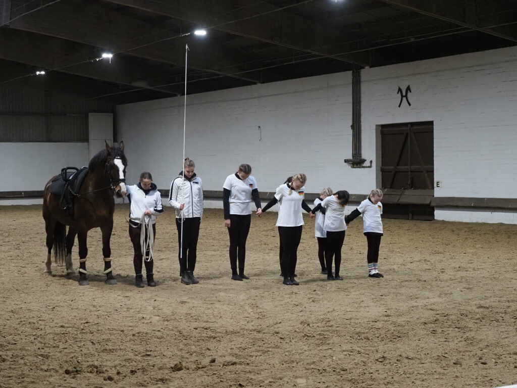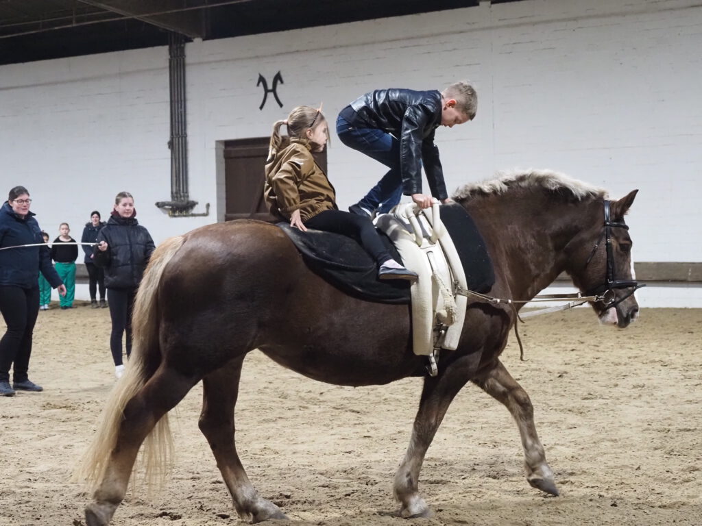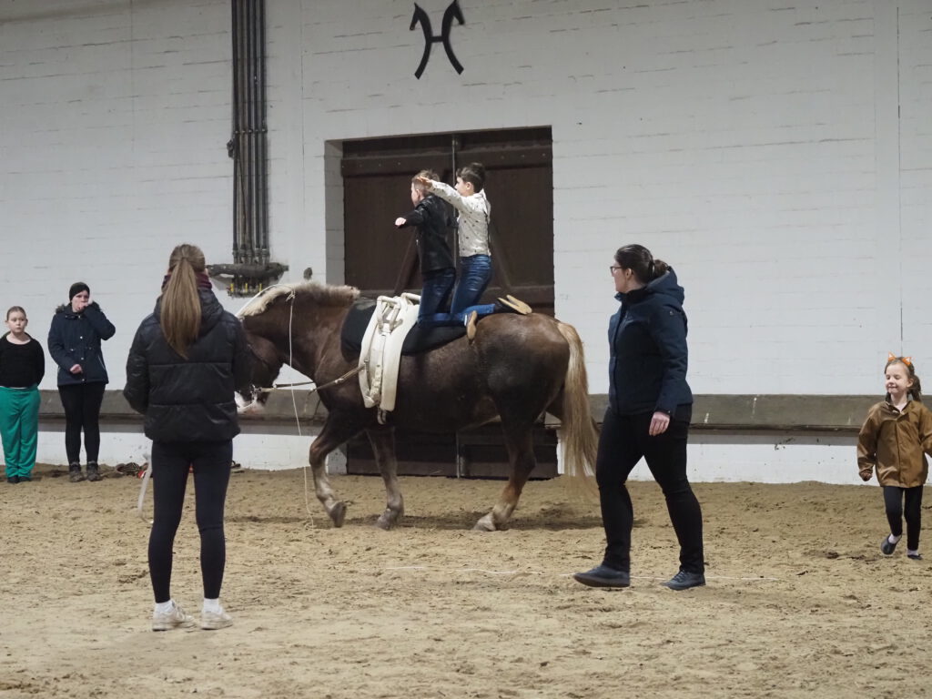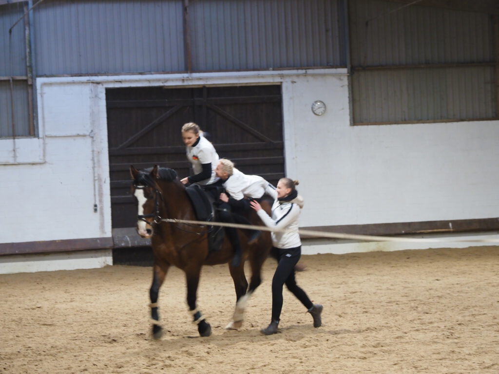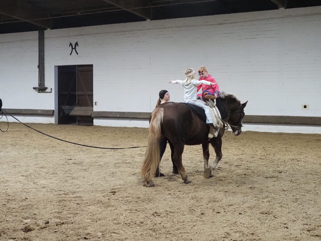 Beim diesjährigen Nikolausreiten war das Motto „Eine Zeitreise“. Unsere Voltigiergruppen haben sich viel zu dem Thema einfallen lassen, die Fotos beweisen es. Am Ende kamen die Zeitreisenden gerade noch rechtzeitig am 6. Dezember 2025 in der Reithalle an, um den Nikolaus nicht zu verpassen.