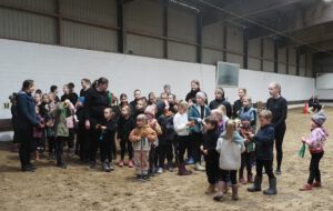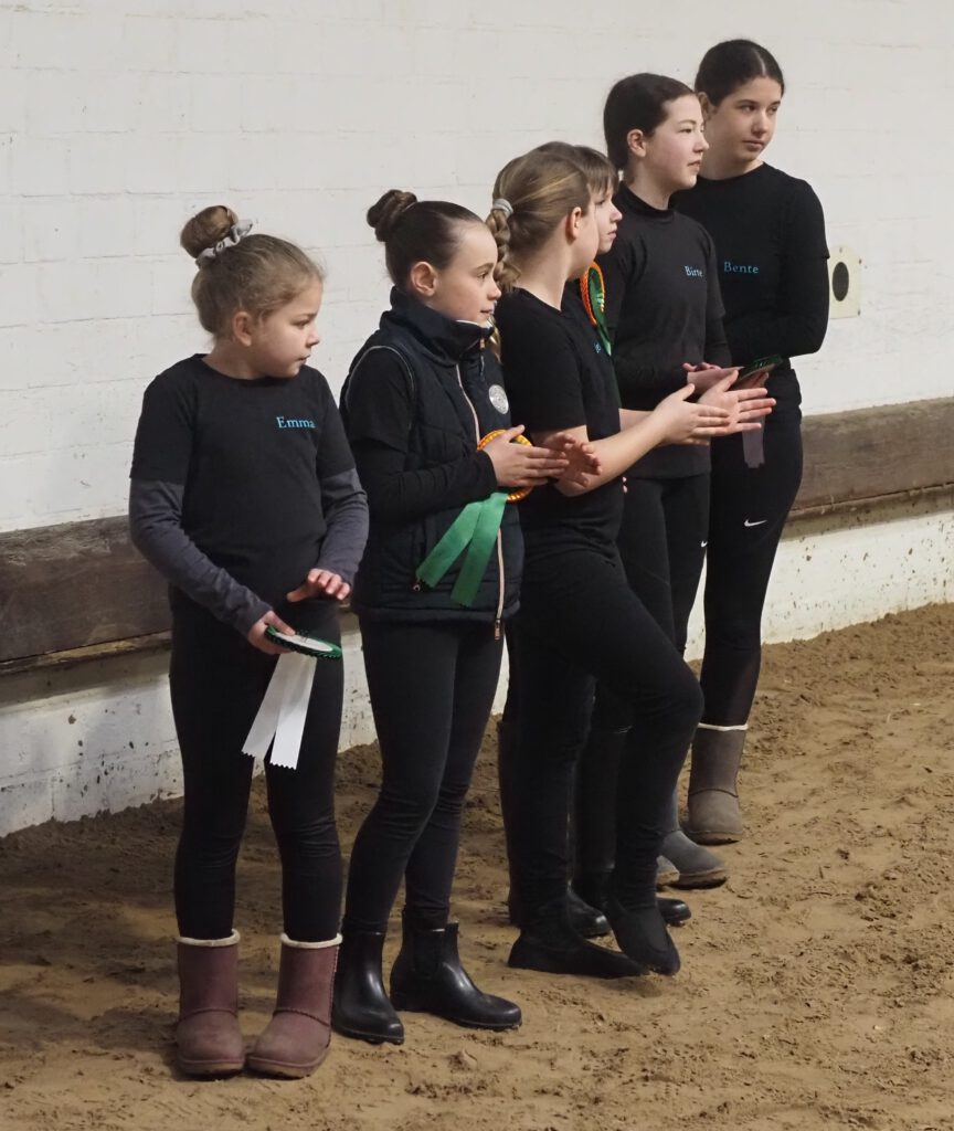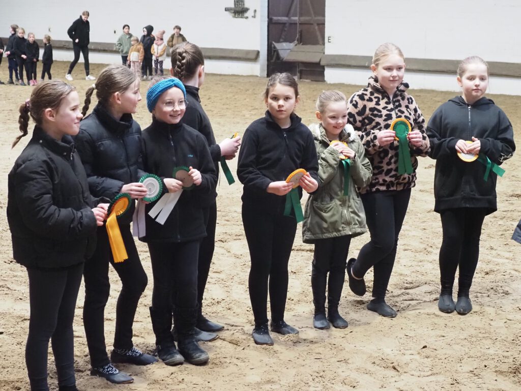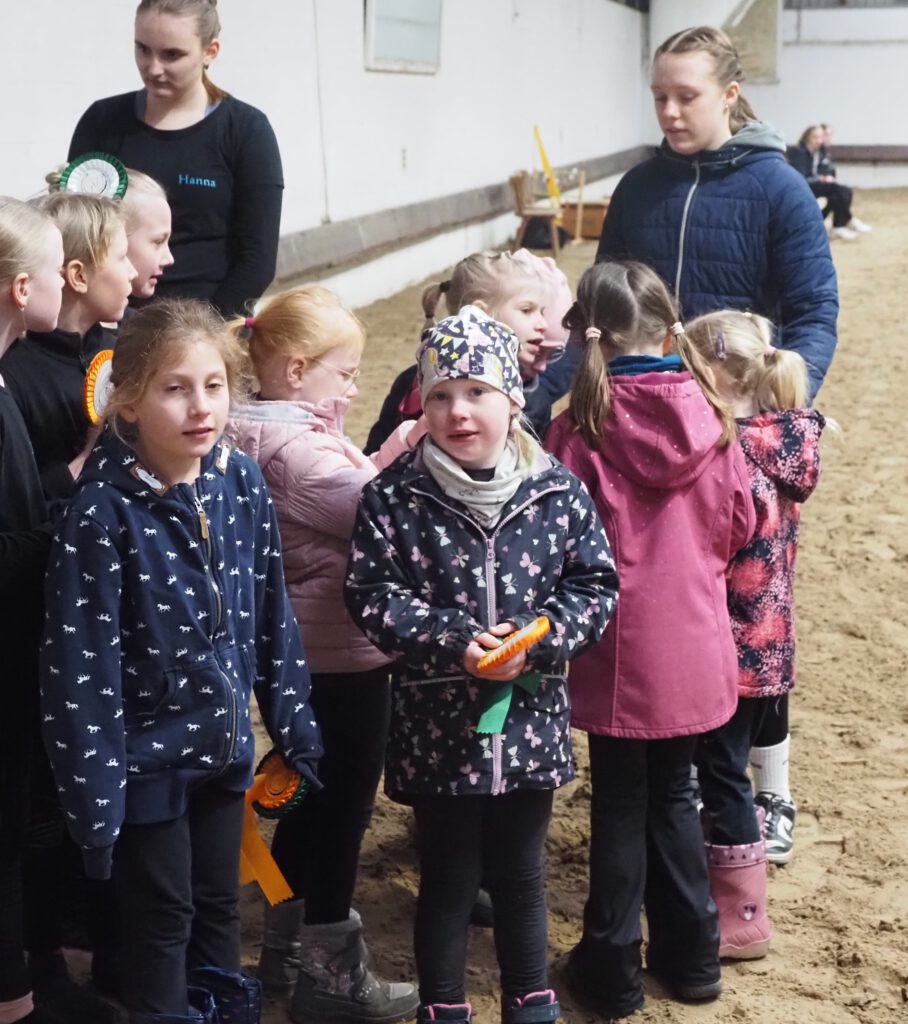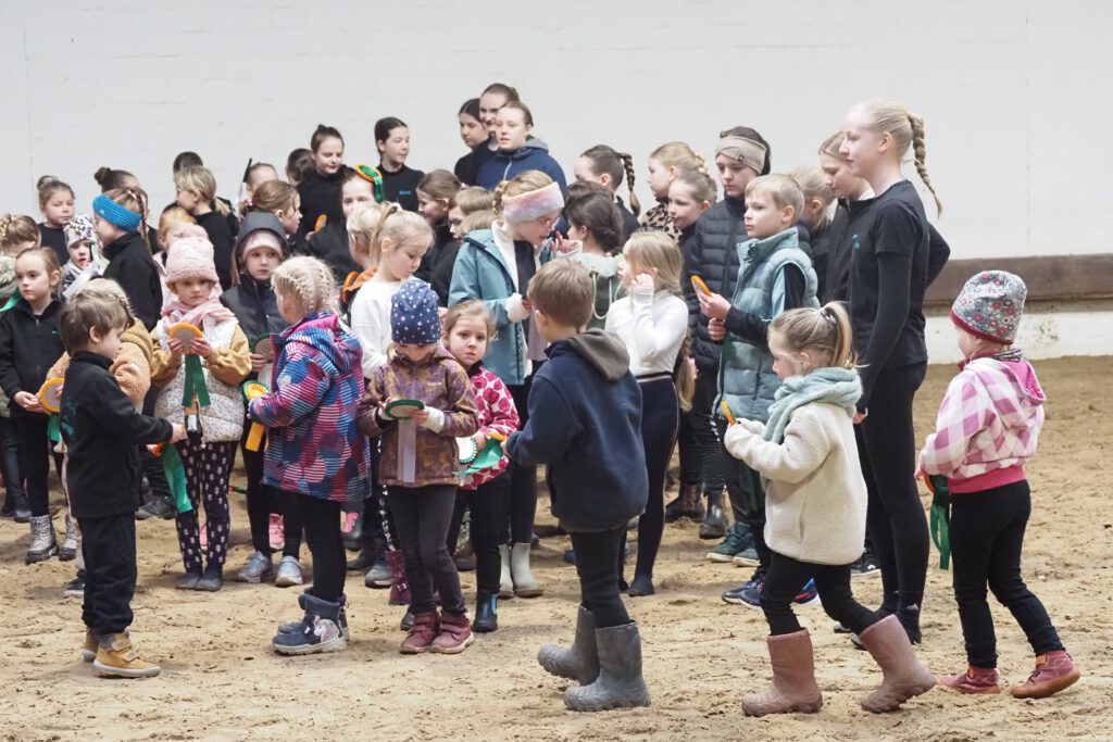 Fast alle Voltigierer und ihre Eltern, Großeltern und Freunde waren da. Der Parkplatz voller Autos, der Zuschauerraum voller Menschen, die Halle voller aufgeregter Kinder. Diese mussten ein Quiz lösen, einen Geschicklichkeitsparcours absolvieren und natürlich voltigieren. Am Ende gab es für alle Schleifen.